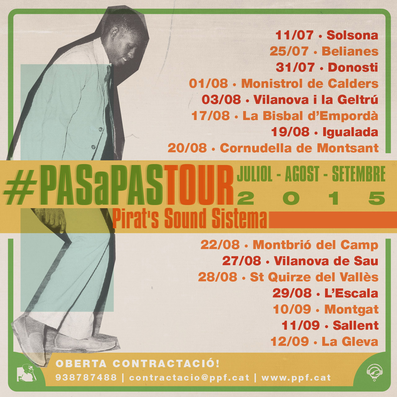 Per celebrar la sortida del nou material, us oferim el resum de les dates confirmades de Pirat’s Sound Sistema per aquest juliol-agost-setembre de 2015. La contractació, com sempre amb la Pirata, és oberta 365dies l’any i 24h al dia! #PasApasTourEstiu2015