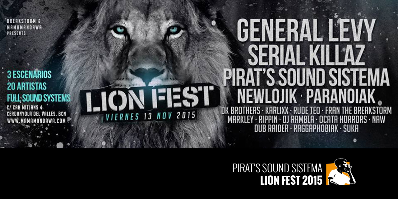Una de les cites d’hivern clàssiques ja pels Pirat’s Sound Sistema, que no aturen motors a la tardor i empalmen temporada amb temporada en un never-ending tour des de fa anys: Lion Fest al Mama Mandawa de Cerdanyola del Vallès! Aquest divendres se celebra la cinquena edició d’aquest festival devot de la bass music de primera: reggae, ragga-jungle, drum’n’bass, dubwise, hardtek i dub... La representació internacional se l’emporten noms de primer ordre de l’escena ragga-jungle i drum’n’bass europeus, com General Levy i Serial Killaz des de UK, recolzats per Paraoniak des de França o Newlojik des d’Itàlia, i Pirat’s Sound Sistema encapçalen el cartell de noms locals, que també inclou artistes com Karlixx, Rude Teo, Dub Raider o Suka entre molts altres!