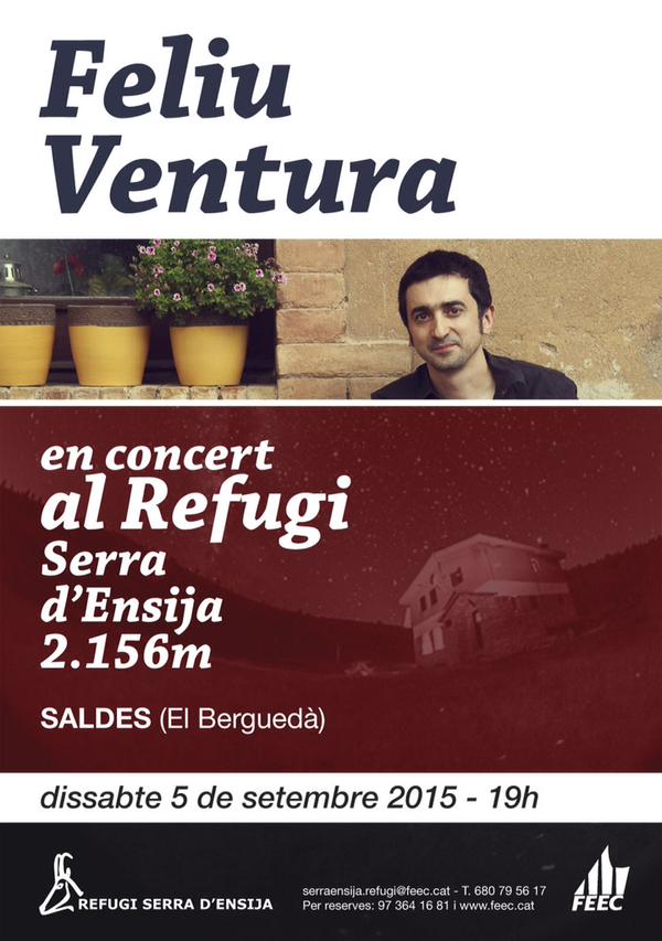Feliu Ventura a la Catalunya Interior després d’encendre la flama a les Festes de Sants la setmana passada i robar el cor dels xativins amb el concert especial del 16 d’agost i el dels conflentins a Prada a ritme d’Ovidi per jamaicanes amb el Xerramequ i els Aborígens el 19 d’agost. Aquest cap de setmana, el cantant i autor de cançons oferirà un concert únic i especial, altre cop, pel format i la singularitat de l’acte: actuació gratuïta, amb aforament limitat i només apta per aquells que salvin el trekking de 90’ que separa Saldes del lloc de l’actuació, el refugi guardat d’Ensija, a 2156m d’altitud. Trobareu més informació per a fer les reserves i per assistir-hi al següent link: https://www.feec.cat/noticia/el-cantautor-valencia-feliu-ventura-en-concert-al-refugi-serra-densija-aquest-dissabte/ i al telèfon 680795617 i correu electrònic Aquesta adreça de correu-e està protegida dels robots de spam.Necessites Javascript habilitat per veure-la.. Si el dissabte teníeu pensada platjeta o no trobeu les xiruques per fer muntanya berguedana, us animem a participar de l’acte ‘Governem-nos’, organitzat per la CUP de Manlleu i que comptarà amb els parlaments de l’Anna Gabriel, la Isabel Vallet i el Jesús Soler i l’actuació de Feliu Ventura.
