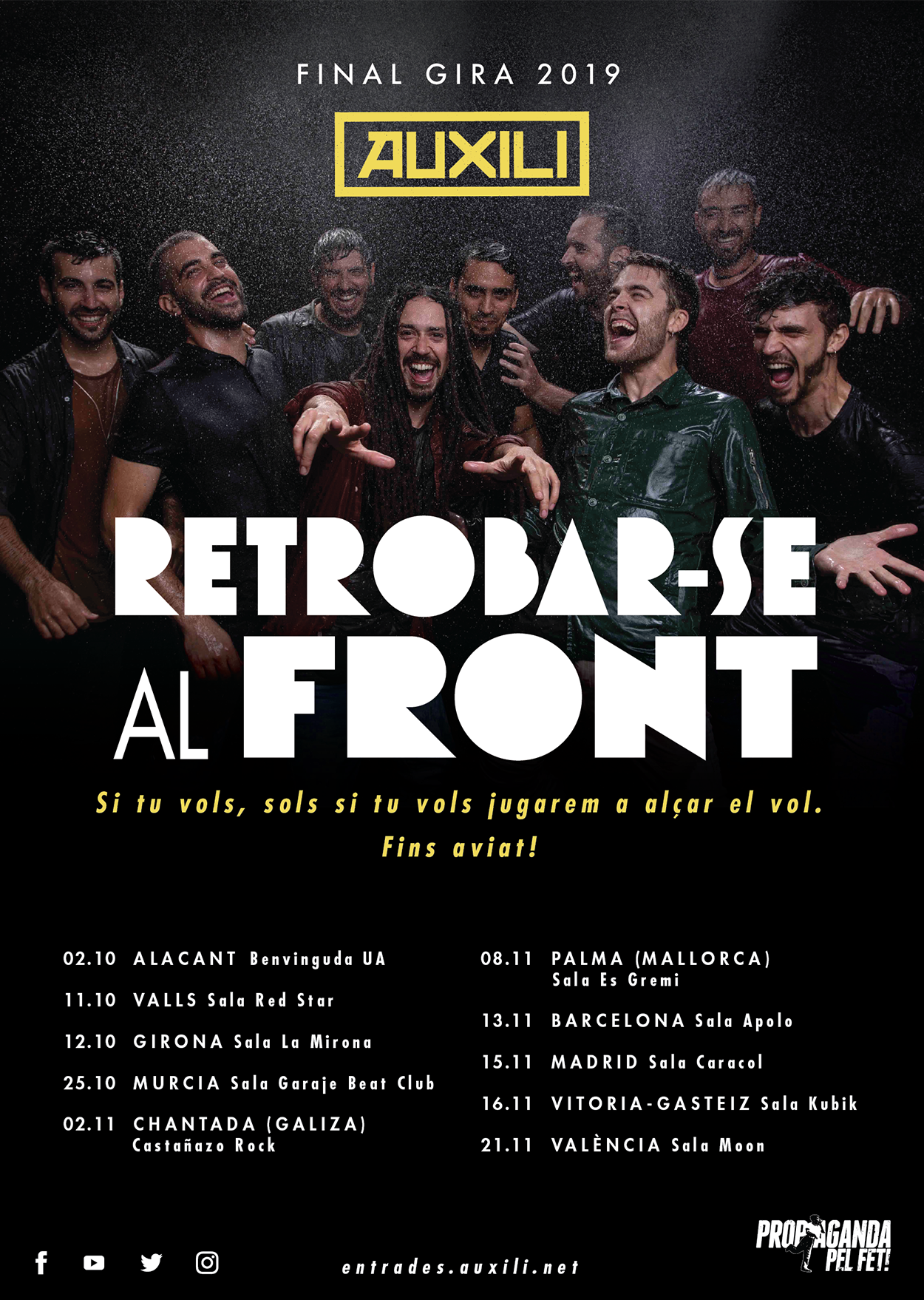 Però abans d’acomiadar-se temporalment dels escenaris, els ontinyentins tancaran la seva gira “Retrobar-se al Front” amb 7 concerts molt especials, en 7 ciutats diferents. D’aquesta manera, passaran per Murcia (25 d’octubre), Chantada (2 de novembre), Barcelona (13 de novembre), Madrid (15 de novembre), Gasteiz (16 de novembre) i València (21 de novembre). A més, també visitaran ciutats com Alacant, Valls i Girona. Les entrades estan ja disponibles a entrades.auxili.net