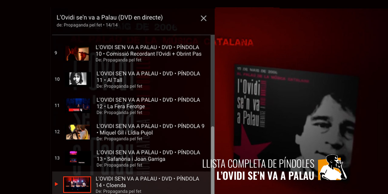 Acomiadem el 2015 i obrim la darrera píndola de les 14 sessions del CD-DVD ‘L’Ovidi se’n va a Palau’ que hem penjat a la xarxa