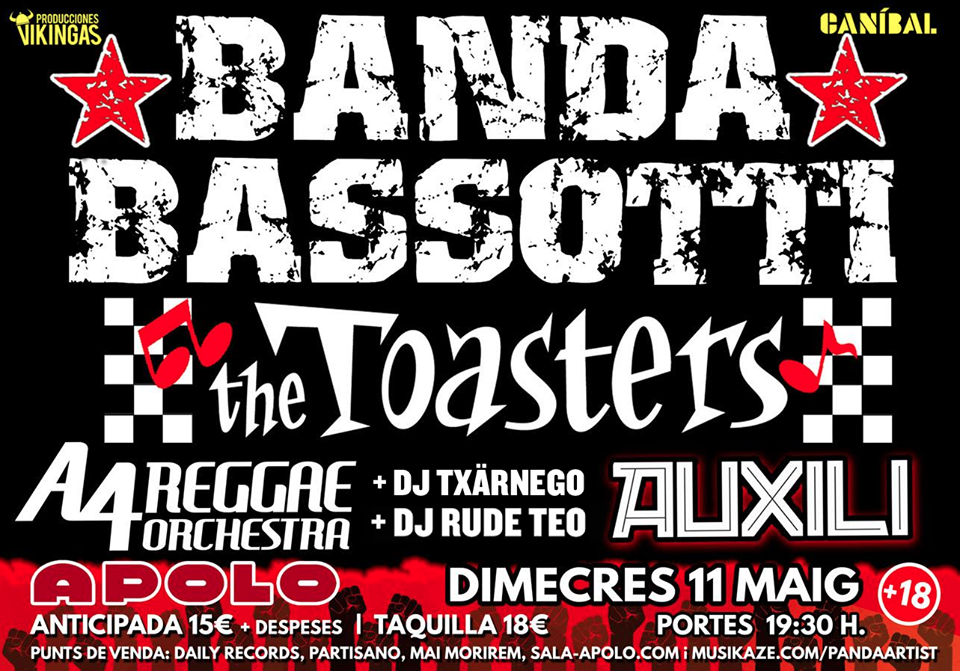 Se sumen al cartell del festival els italians Banda Bassotti, els mítics The Toasters des del Lower East Side de NYC i els catalans A4ReggaeOrchestra