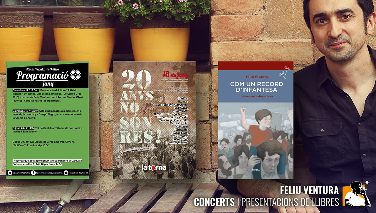 El cantant i autor de cançons xativí Feliu Ventura s’estrena en la narrativa amb un novel·la per a joves amb la memòria històrica i Ovidi Montllor com a eixos vertebradors