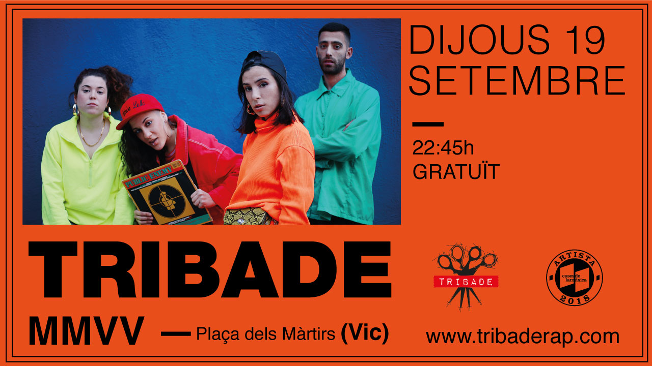 La jove formació barcelonina de rap i música urbana Tribade publicà el 8 de febrer el seu primer disc ‘Las Desheredadas’ i inicià la gira de presentació el 8 de març a Berlin: en 3 setmanes les raperes han passat per Alemanya, SXSW (Austin – EUA), CDMX (Mexico), Bilbo, Zaragoza, Manresa i avui és el torn del festival MIL a Lisboa (Portugal)