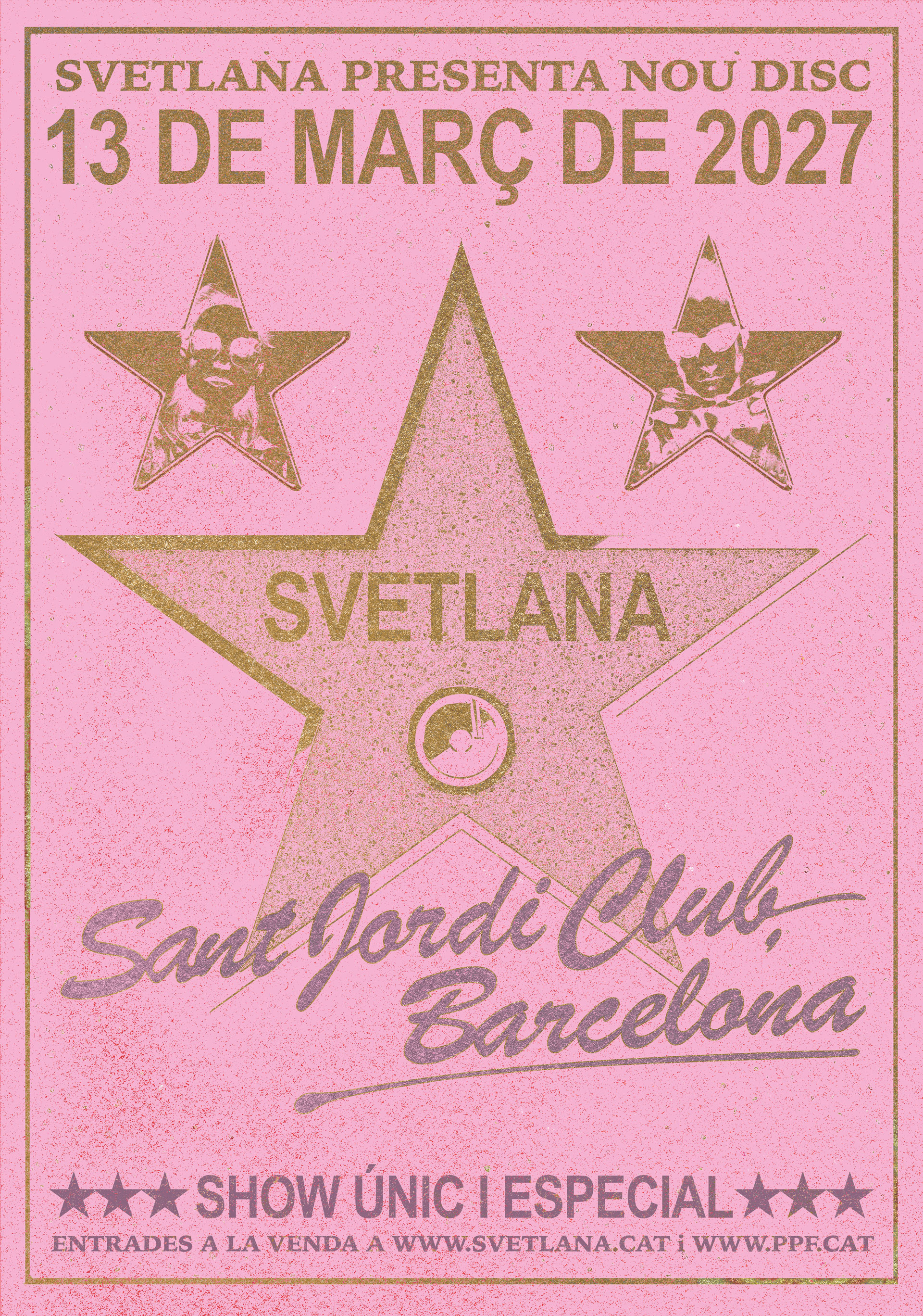 Después de calentar el otoño con el tramo final de su gira “Marraníssima World Tour 2025”, el lanzamiento de su nuevo single AVUI VÉNS el pasado viernes 21 de noviembre y de alzarse con el Premi ARC 2025 a Grupo Emergente del año, Svetlana nos prometían un invierno lleno de incendios. Y aquí lo tenemos: Svetlana anuncian un show único y especial en el Sant Jordi Club de Barcelona para el próximo 13 de marzo de 2027, cuyas entradas están disponibles desde hoy a las 9 h de la mañana en www.svetlana.cat y www.ppf.cat